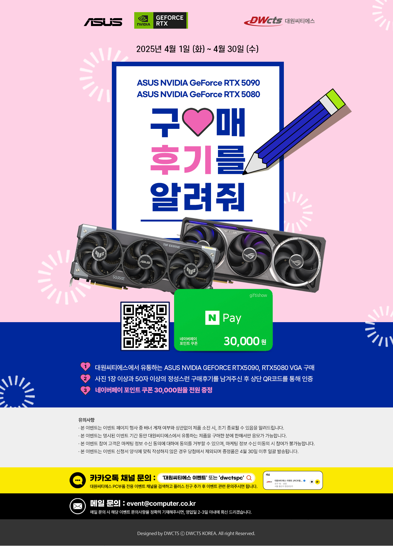 현재 대원씨티에스에서 유통하는 ASUS RTX 5090, RTX5080을 구매 하신 후,