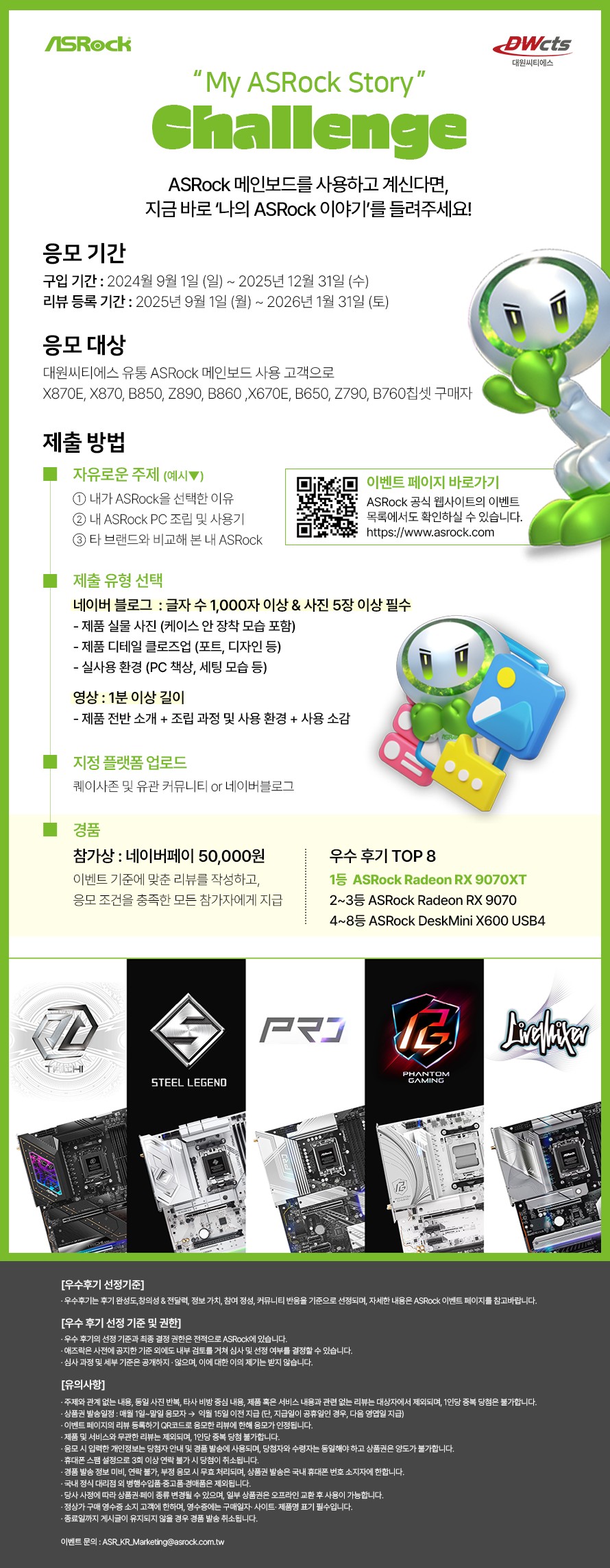 대원씨티에스에서 유통하는 ASRock 메인보드를 구매 후, 양식에 맞추어 여러분의 이야기를 들려주세요!